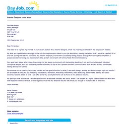 Interior Designer Cover Letter Sample : Currently, as interior designer for integrated design solutions, i manage 100+ interior design projects from concept through to completion, with budgets of up to $200k.